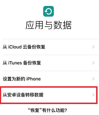 :每个人都可以快速学习如何使用它,它可以实现两者之间的互操作性,包括消息历史记录功能。1、在iPhone上激活到【应用与数据】时,选择【从安卓设备转移数据】