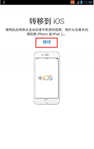 3、接下来在本站安装转移到ios应用,打开转移到iOS,点击【继续】