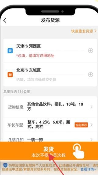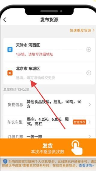 1、安装货车帮货主版,点击【发货地区】。