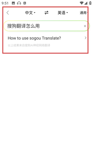 2、输入内容后系统会自动生成翻译结果,比如输入【搜狗翻译怎么用】,就能获取对应的英文翻译啦。