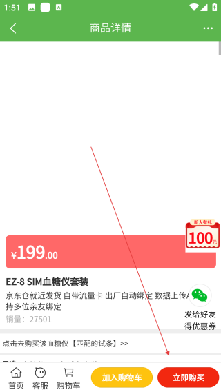 3、进入商品页面后,点击【立即购买】即可。