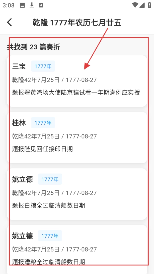 进入乾隆相关页面后,能看到不少【奏折】,挑选感兴趣的查看具体内容,体验非常好。