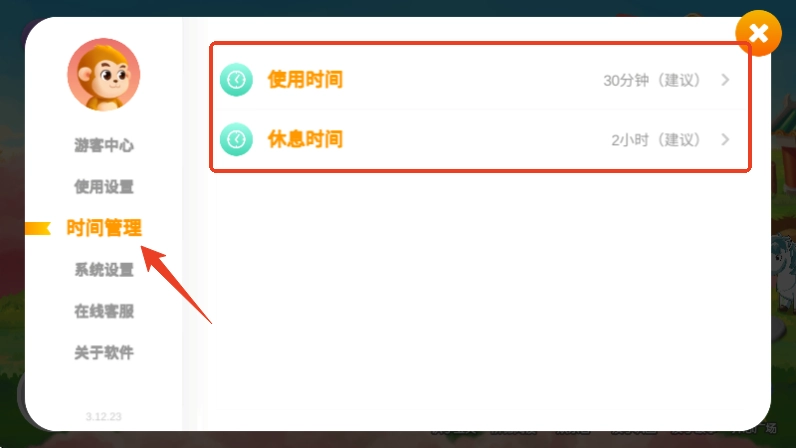 2、然后点击【时间管理】,在右侧选择【使用时间】