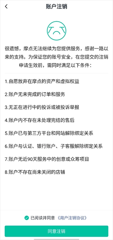 4、勾选“已阅读并同意《用户注销协议》”,然后点击“同意注销”按钮就可以了。