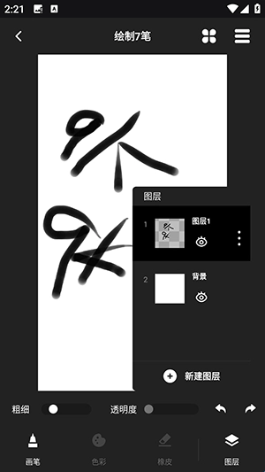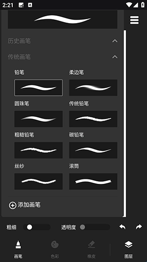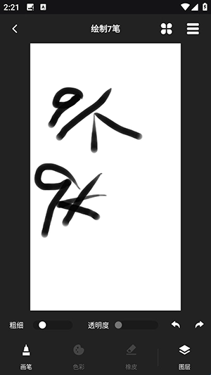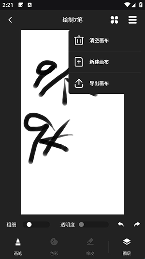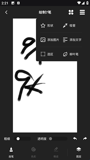 4、绘画时可以调整粗细,透明度。