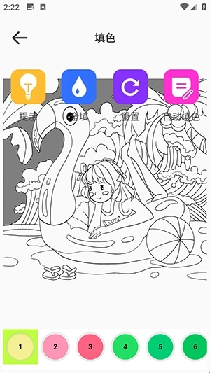 3、上色界面有提示,自动填色等功能可以用。