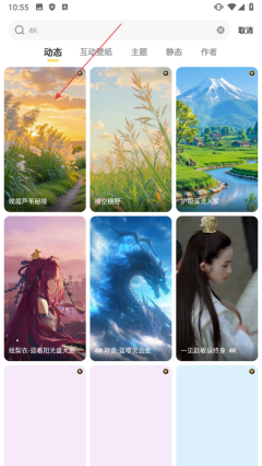 3、在搜索结果里,点击【目标壁纸】,就能进入壁纸预览页面。
