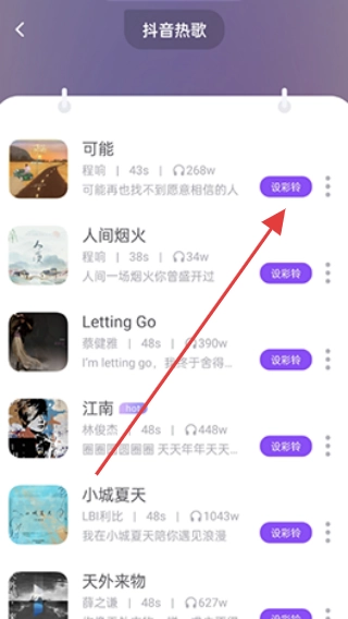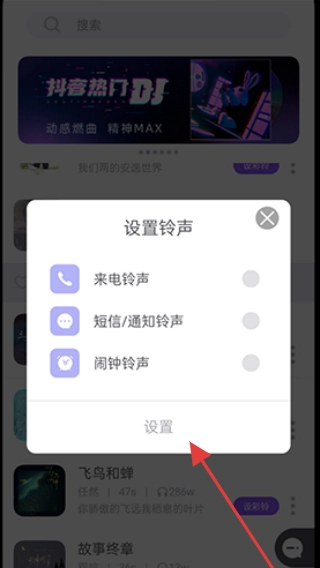 2、进入分类页面,选择喜欢的音乐点击【设彩铃】。