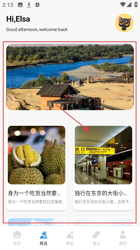 3、切换至【精选】页,有不同目的地内容,选东京相关内容,了解东京旅行的风景与体验。
