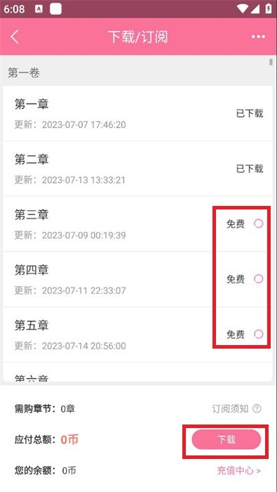 5、选择自己想要下载的章节,就可以点击【下载】进行章节的下载。