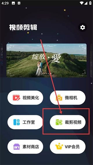 1、在视频剪辑主界面点击【裁剪视频】选项,即可进入裁剪页面,着手处理目标视频。