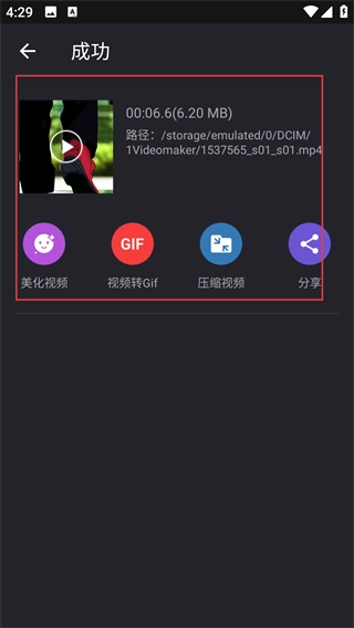 4、裁剪完成后会呈现视频的保存路径,还可以直接通过【美化视频】【分享】等功能对成品进行后续处理哦。