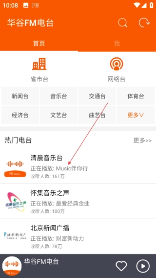 1、打开华谷FM电台,点击【喜欢的电台】。