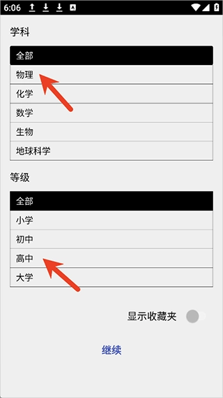 2、还能依据学科等级来筛选,像高中阶段的物理实验就可以作为筛选示例。