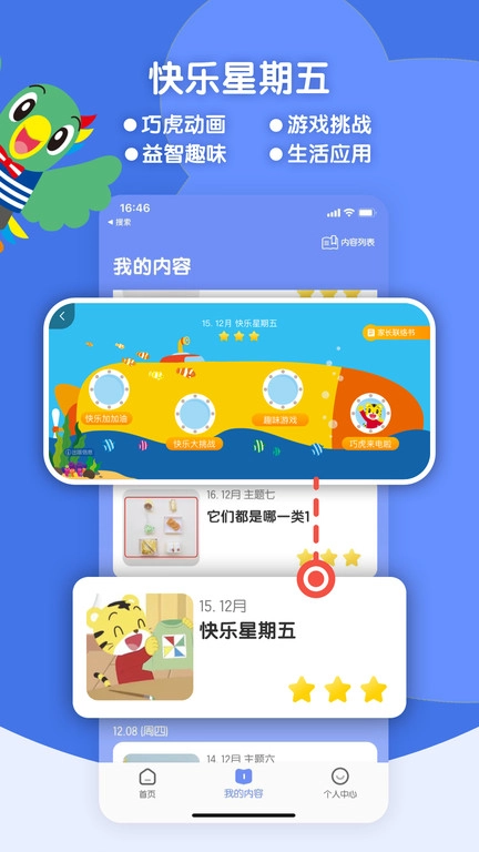 巧虎思考力软件是一款儿童教育类的学习辅导工具。针对不同孩子的特点,我们会为他们定制专属的学习方案。通过将动画与学习内容相融合的教育方式,能更好地激发孩子的学习兴趣,让他们在边看动画边学习的趣味过程中,于轻松氛围里快乐成长。欢迎体验!