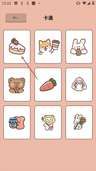 3、在【卡通】图案列表里,点击草莓蛋糕图案,就能进入该图案的绘画编辑界面。