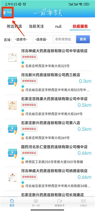 6、当然,要是你想查看河北省其他地区的药店,点击左上角的定位功能就行。