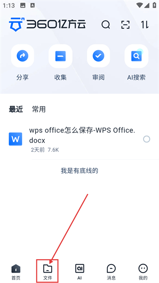 1、在360亿方云首页点击底部的【文件】选项,即可进入文件管理页面,查看各类文档资源。