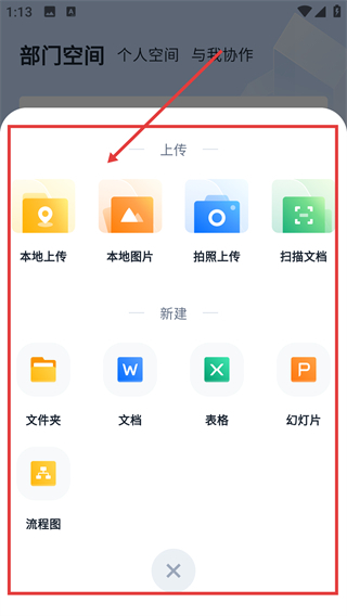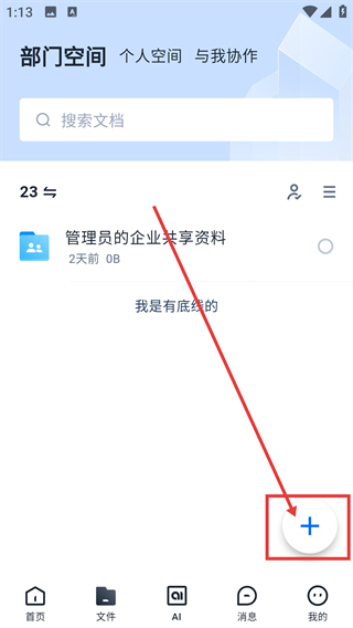 进入文件页面后,点击右下角的加号按钮,即可打开操作菜单,从中选择上传或新建文件的选项。