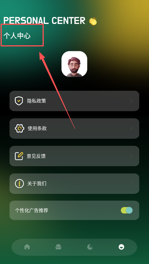 1、可以先进入个人中心,查看一下隐私政策与使用条款,接着根据自身需求调整广告推荐相关设置,完成这些操作后,就差不多熟悉软件的基本规则了。