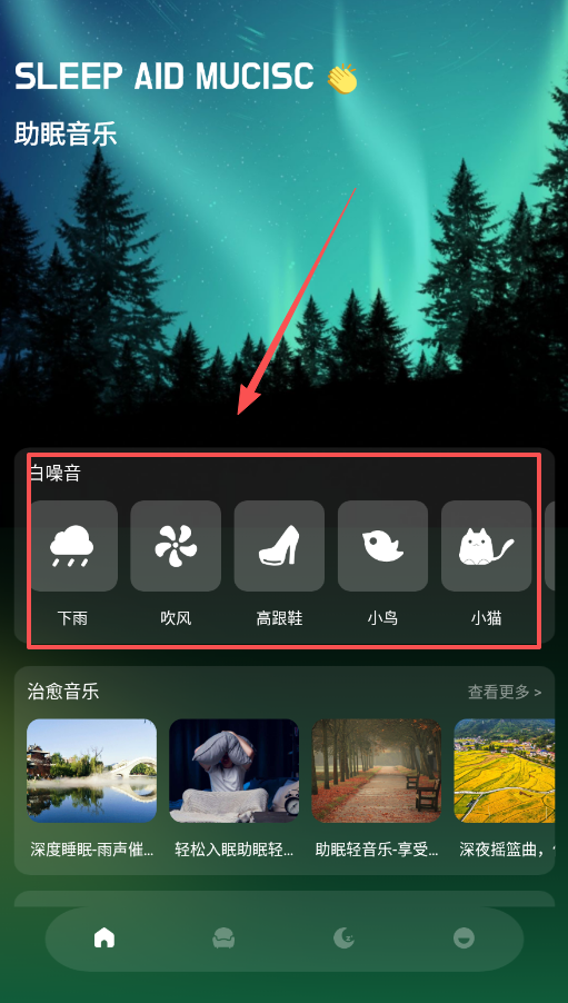 2、要是睡不着,不妨去助眠音乐板块看看,那里有雨声、风声,还有小猫的呼噜声呢,随手点一个听听,找找哪种声音最能帮你入睡。