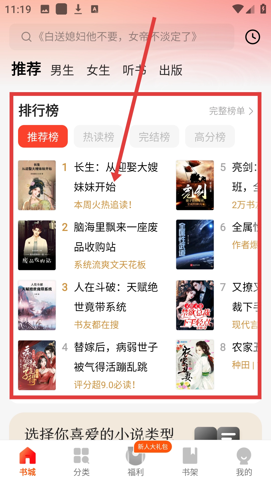 1、在书城的排行榜里挑选你喜欢的小说,点击一下就能进入小说详情页,开启你的阅读之旅啦。