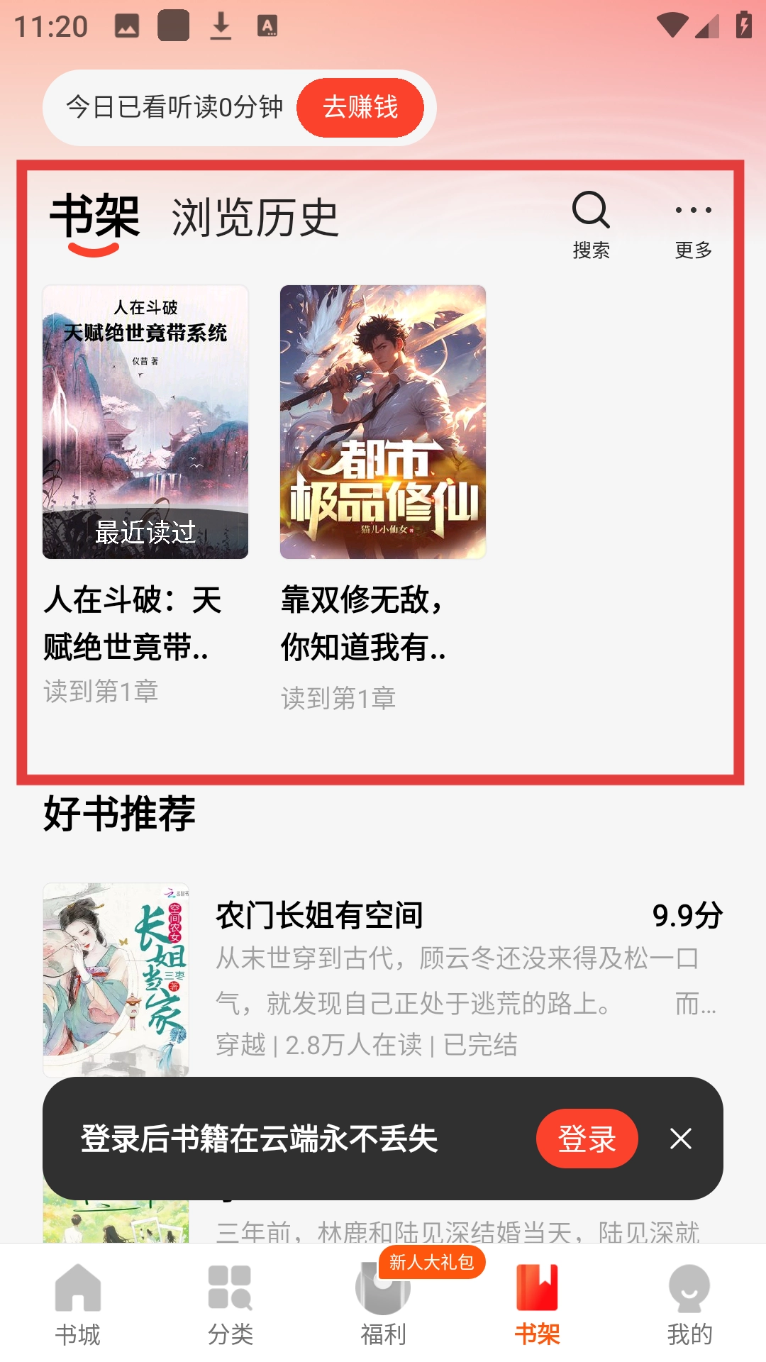4、进入书架页面,就能看到所有已收藏的小说,方便你随时挑选阅读。