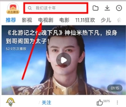 1、打开登录软件,点击上方【搜索】查找喜欢的视频或节目
