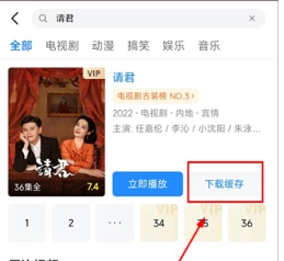 2、搜索到该节目后,点击【缓存】
