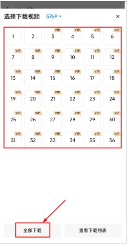 3、勾选需要缓存的剧集,或是点击【全部】