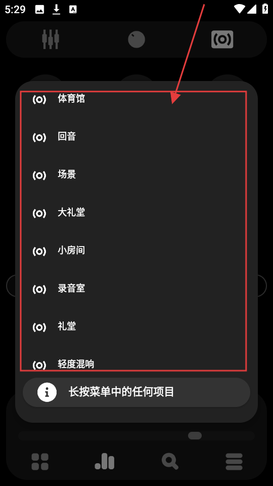 2、在预设音效场景列表里,有【体育馆】【回音】等不同场景,选一个喜欢的场景点击。