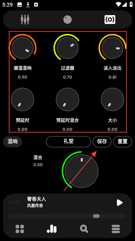 3、选好场景后,对应的音效参数会自动调整,要是觉得效果不错,点击【保存】按钮。