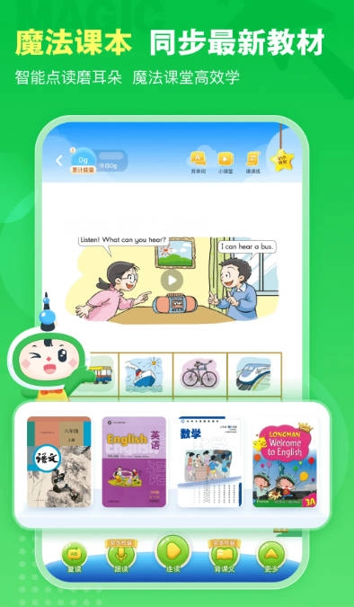 上海本地1-9年级的课本,只需一键就能实现智能点读,采用授权的原版音频,还具备复读、连读、翻译、口语评测以及同步练习等多种功能,助力学生开展课前预习与课后复习。