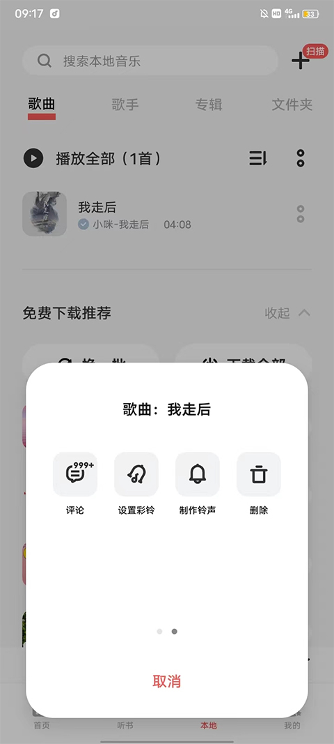 2、在本地音乐的界面点击这首歌右边的两个点。