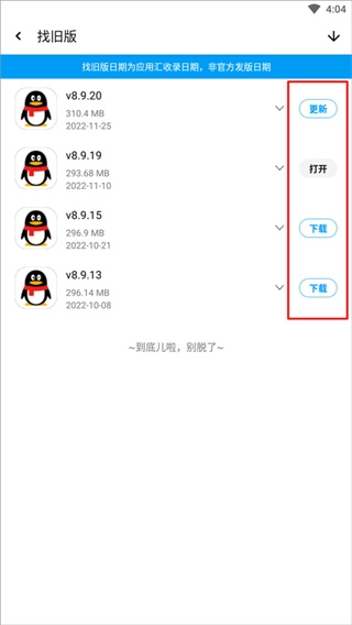 4、点击进入,即可看到QQ所有的历史版本,选择所需要的旧版本安装即可。