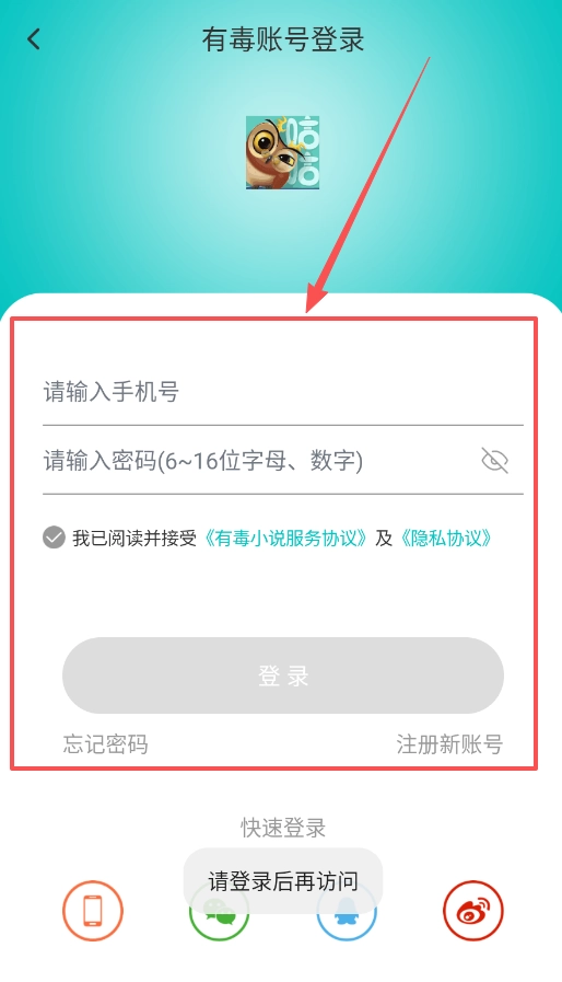 1、首先下载并安装有毒小说,完成简单的注册流程后,就能进入内容丰富的小说天地,随时开启您的阅读之旅。