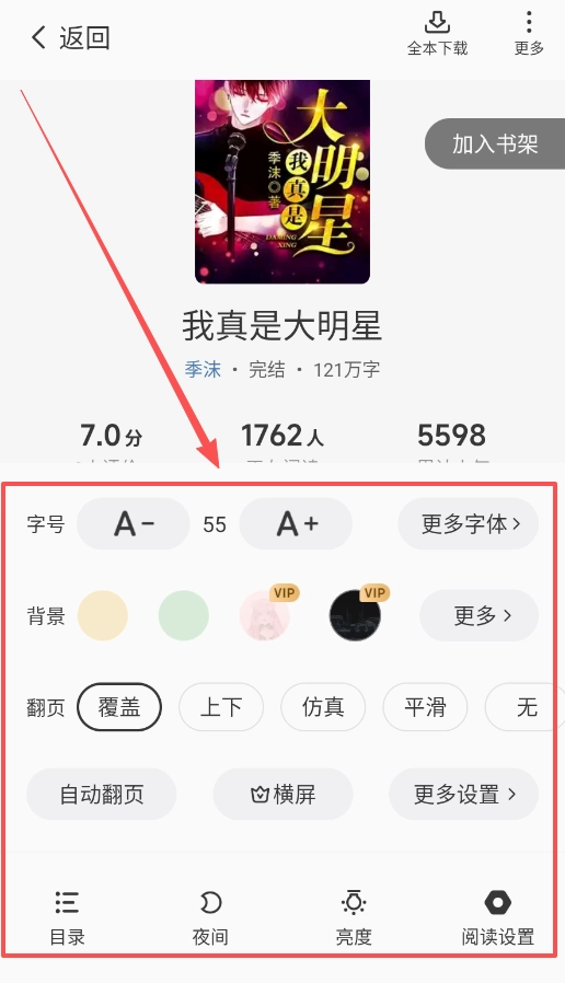 4、阅读设置功能支持用户自主调整界面背景与字体样式,以此构建契合个人偏好的阅读场景,助力您尽情享受流畅的阅读体验。