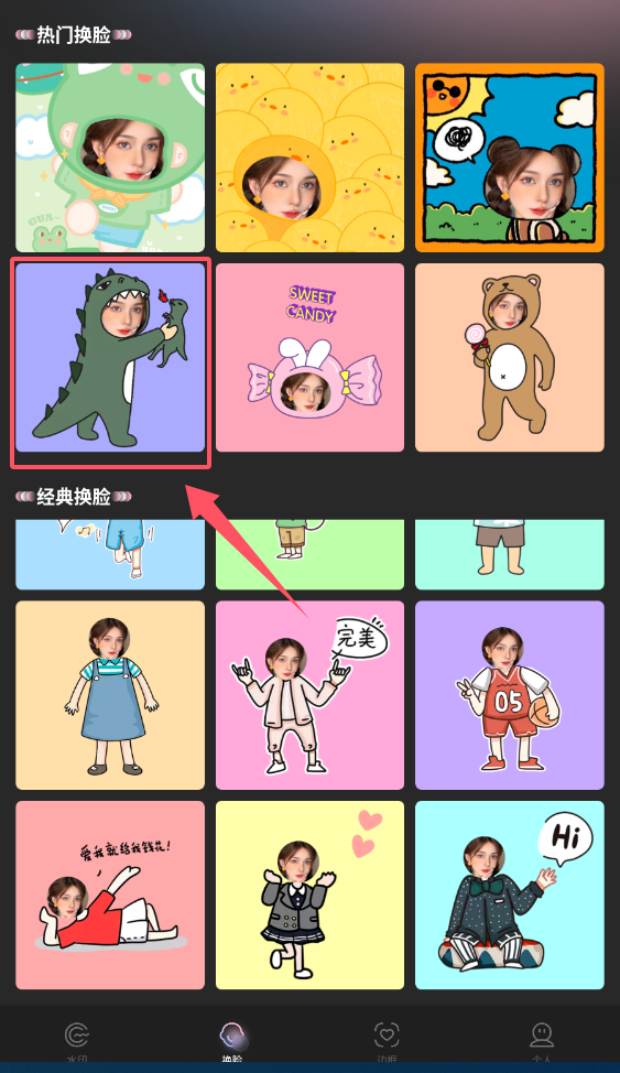 2、ToonMe照相机的所有相机摄影模板均可直接使用,此外还能制作专属水印。
