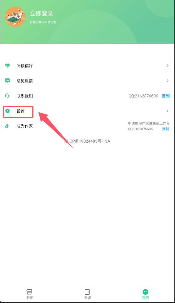 4、个性化设置需要在我的页面完成,记得先点击顶部的立即登录来同步阅读记录。在这里你可以设置阅读偏好、提交意见反馈。