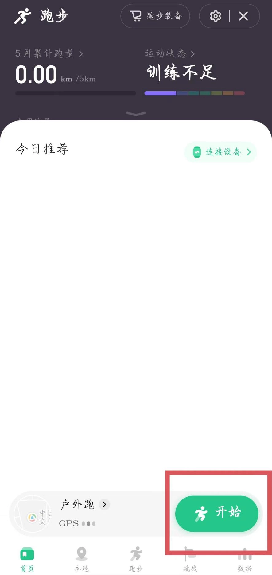 无论是户外跑还是在跑步机上,点击“开始”按钮就能记录跑步的公里数了。