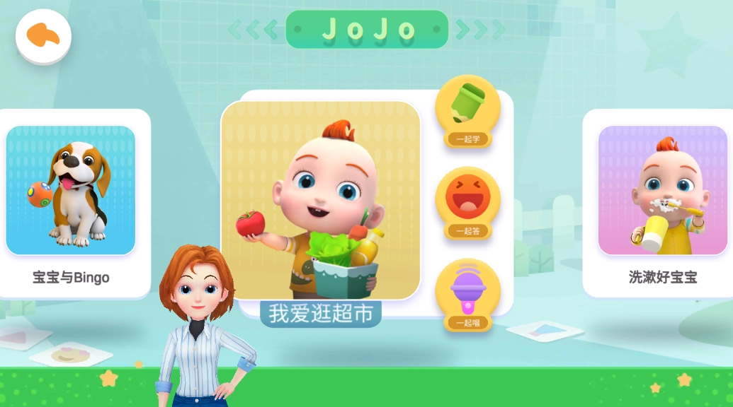 1、可爱的JoJo陪伴在侧,能让宝宝更有亲近感,也更容易吸引宝宝去体验、去学习;