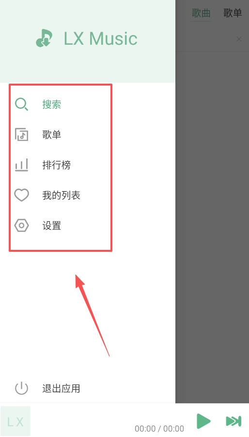 整个应用的操作逻辑十分清晰,核心功能都集中在左侧导航栏区域。如果想查找特定歌曲,直接使用搜索功能即可;要是想按系列收听,就可以借助歌单功能。最后需要注意的是,退出应用的入口在菜单底部。