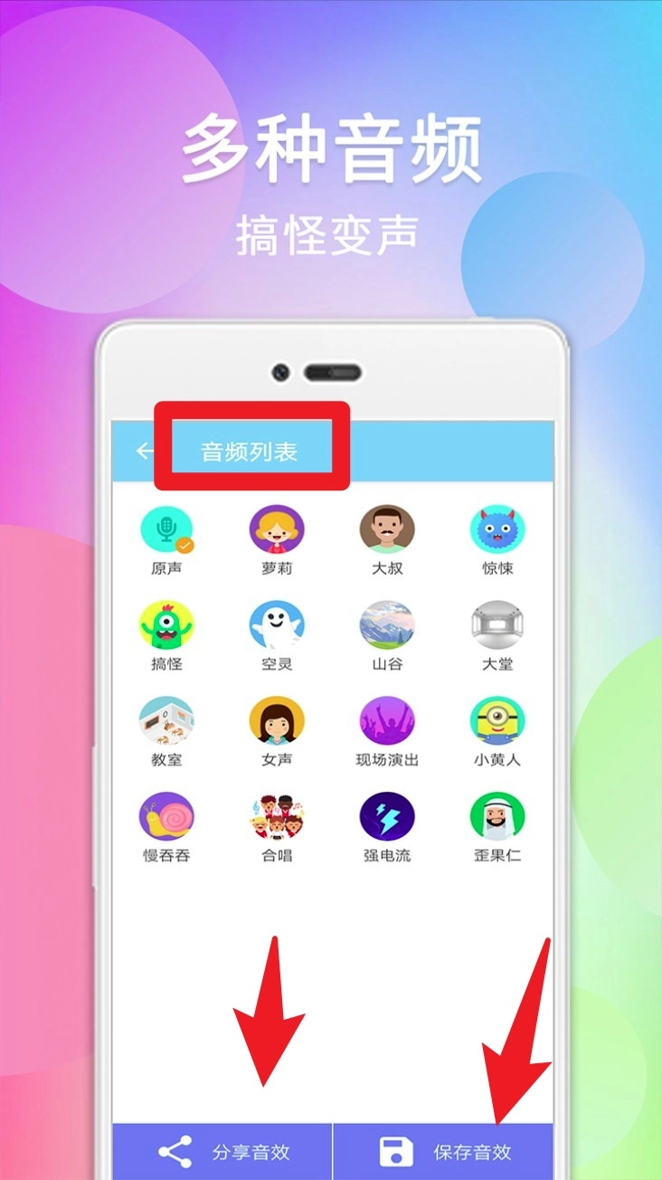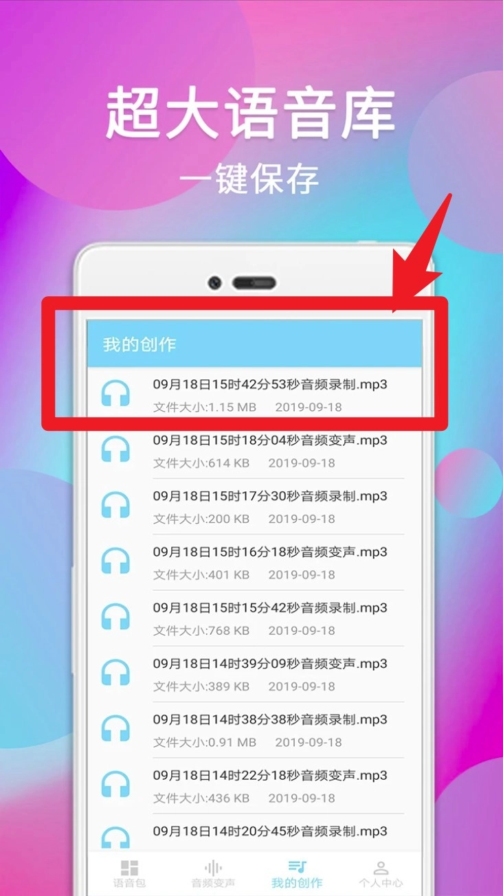 2. 录音结束后会自动跳转到音频列表页面,在这里可以浏览各类语音模板,还能实时试听不同的变声效果。