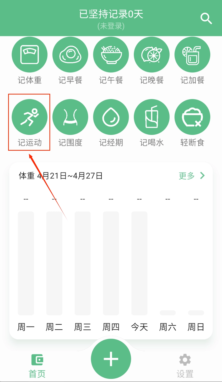 3、在记录页面,用户可以记录每日饮食情况,同时记录自身的卡路里摄入与消耗数据。