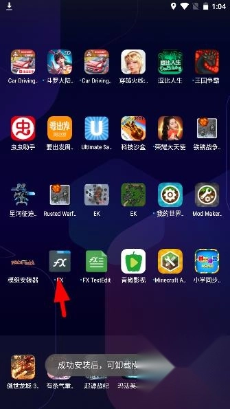 12、点击图标进入我的世界,查看提示确认是否成功。