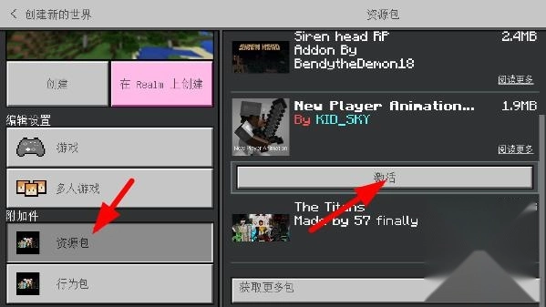 内嵌资源包激活工具,安装后需在游戏设置中启用。