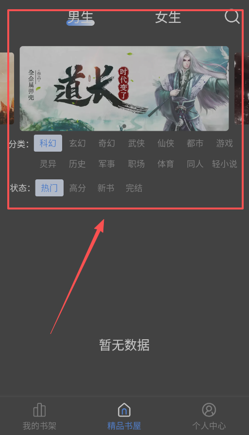 2、第二步是学习找书。你可以通过男生女生频道选择大方向,然后在科幻、灵异、历史等细分分类中浏览。