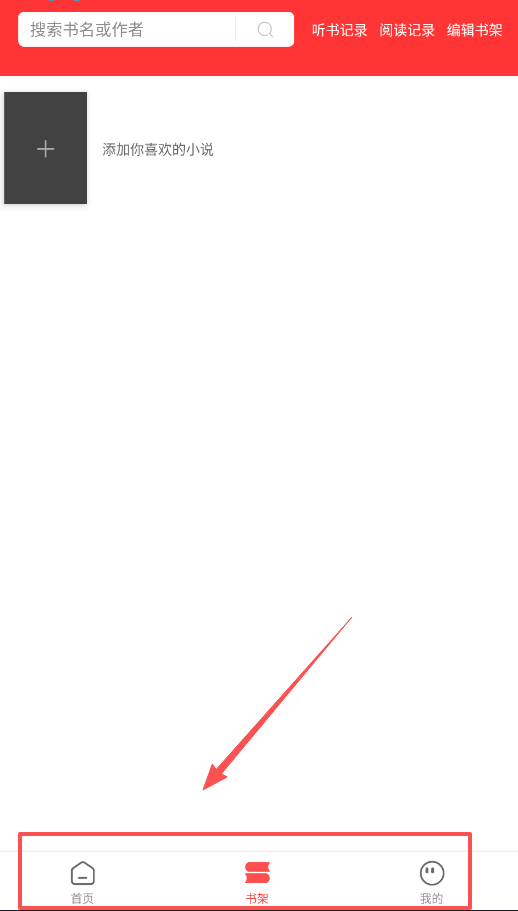 1、咱们先看底部三个图标,首页用来找新书,书架放你爱的书,我的管所有设置。