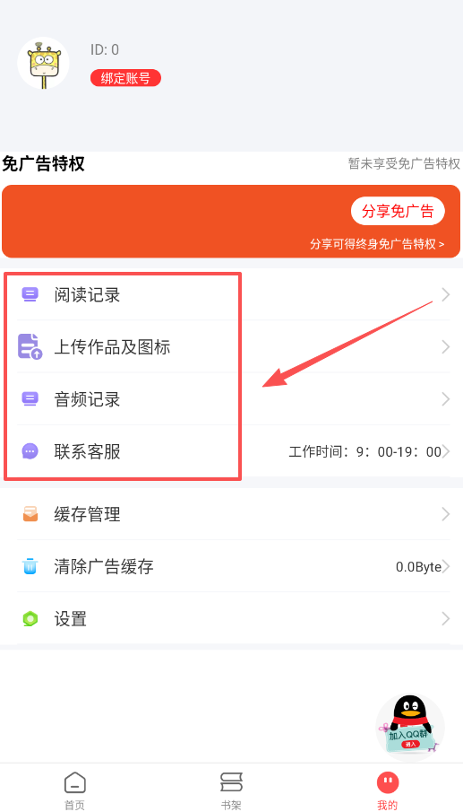 2、别忘了点开我的页面看看,这里可是功能大宝库。你能绑定账号防止记录丢失,查看自己的阅读足迹。