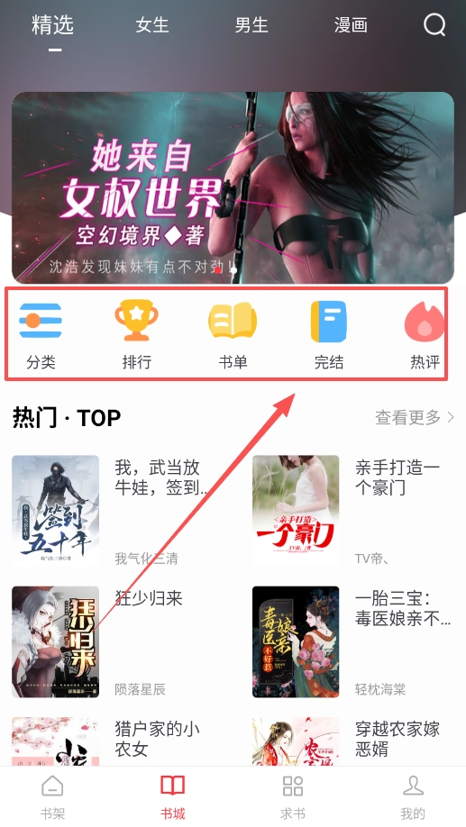 在“书城”找书的时候,建议多关注带有“完结”标识的作品,这样就能一口气读完,不用再为追更而等待了。